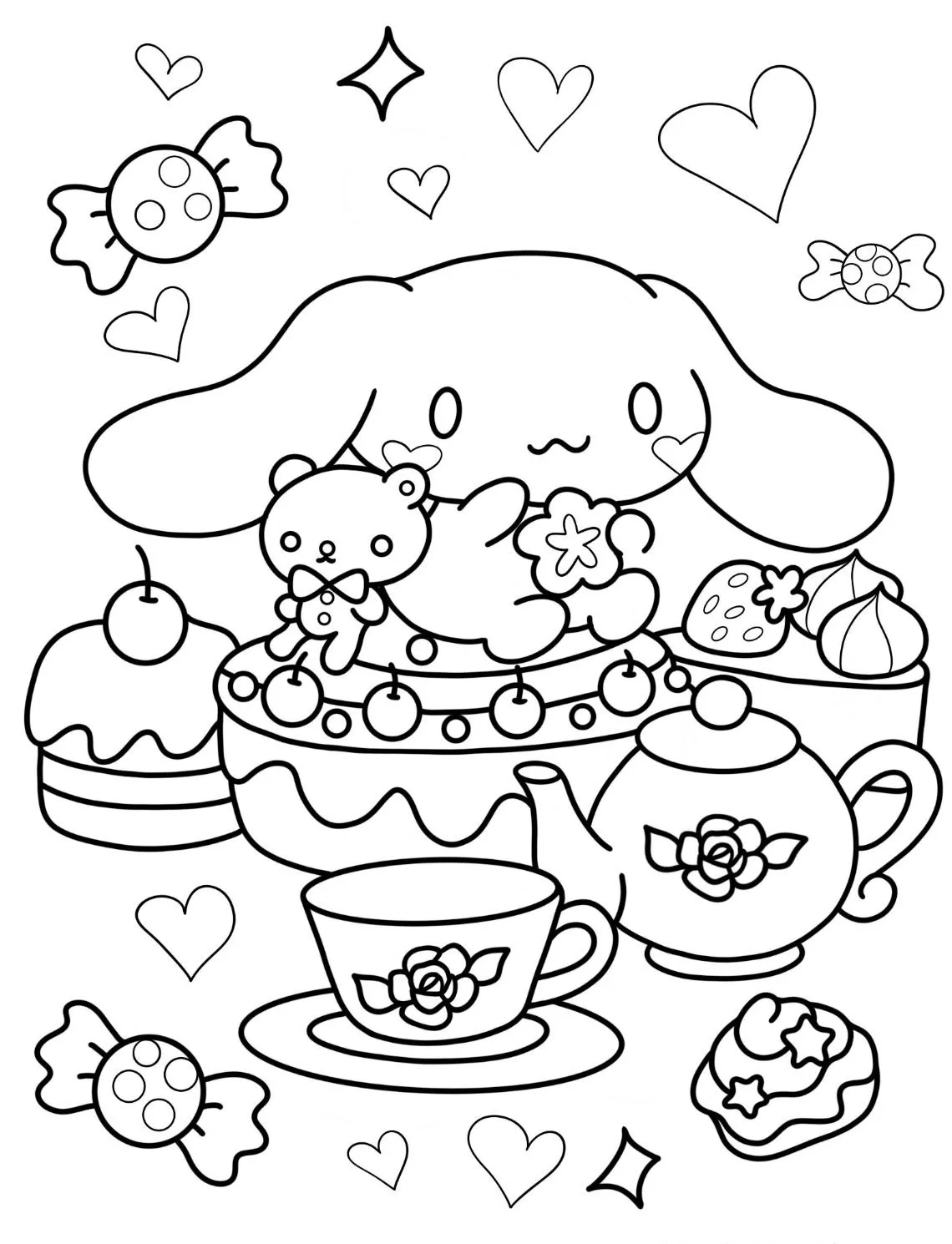 Ever wonder what happens when a puppy is born on a cloud? Meet Cinnamoroll, the sky-born pup with ears perfect for flying! Our 22 Cinnamoroll coloring pages capture this sweetie mid-adventure – from floating through cotton candy skies to having tea parties with friends who don't mind that he literally has his head in the clouds.